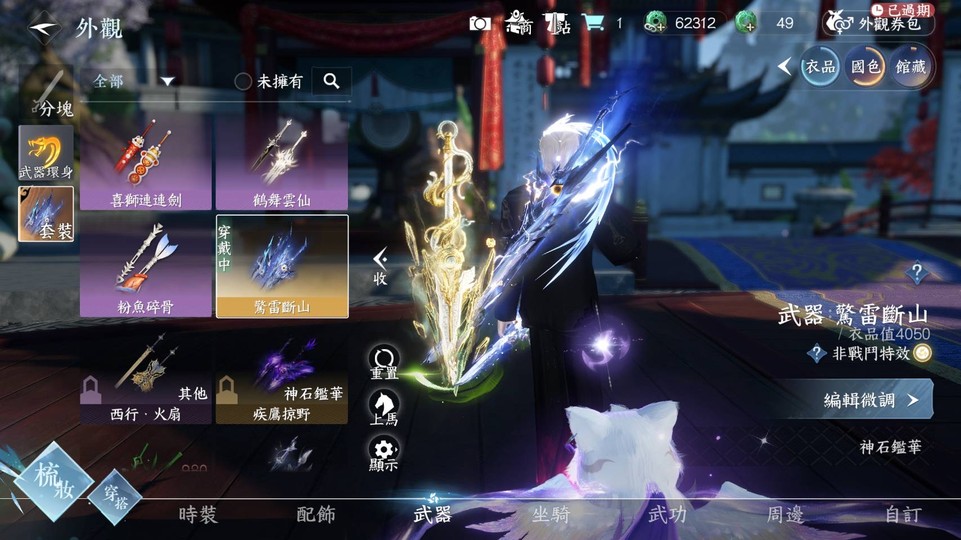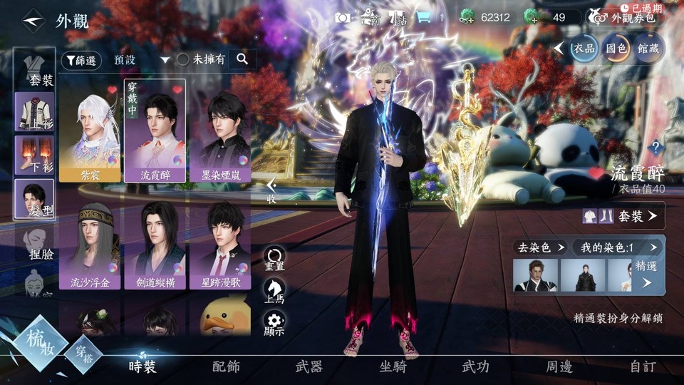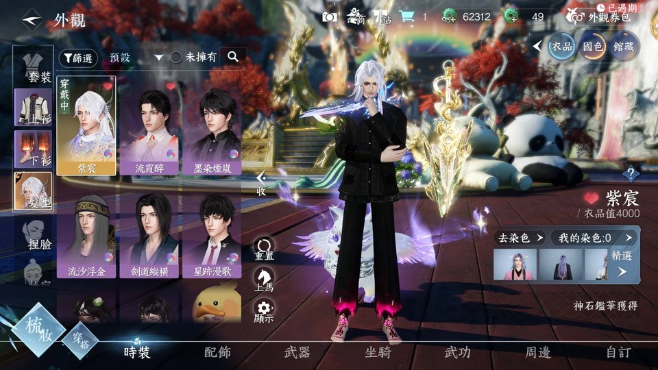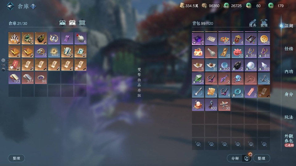 背包已準備:一張轉職卷,一顆性別轉換丹,2880自選時裝,金打造,和很多群俠帖,靈韻內功現版本楚狂歌。