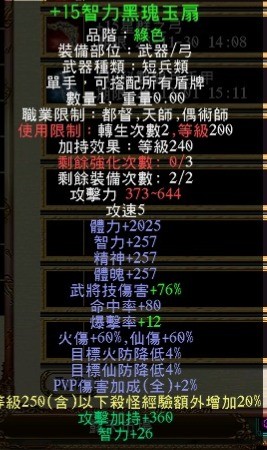 ㊣頂+15黑瑰玉扇76趴(全新綠階,強3,已強,智+26)-10000T
