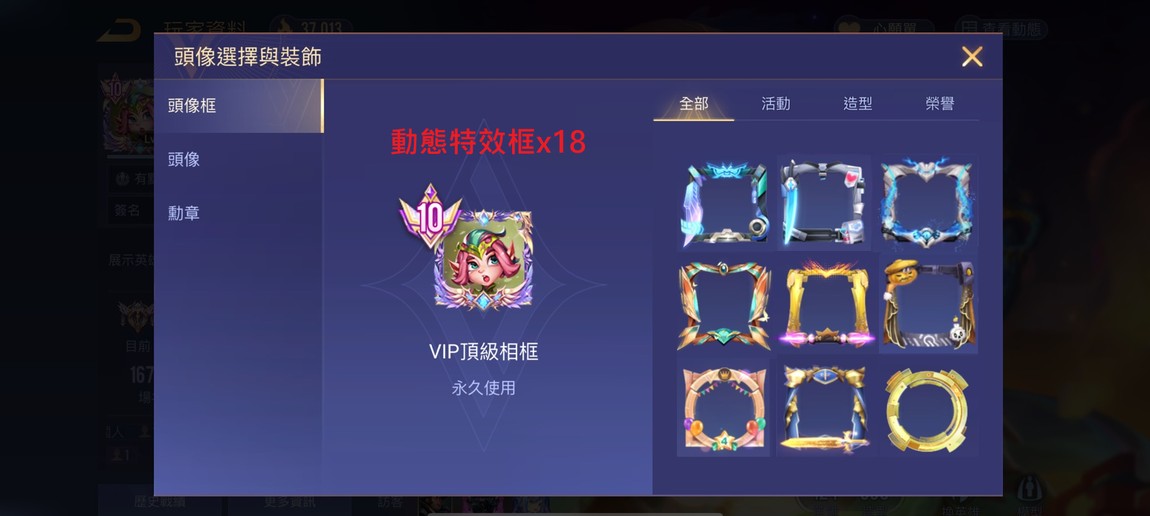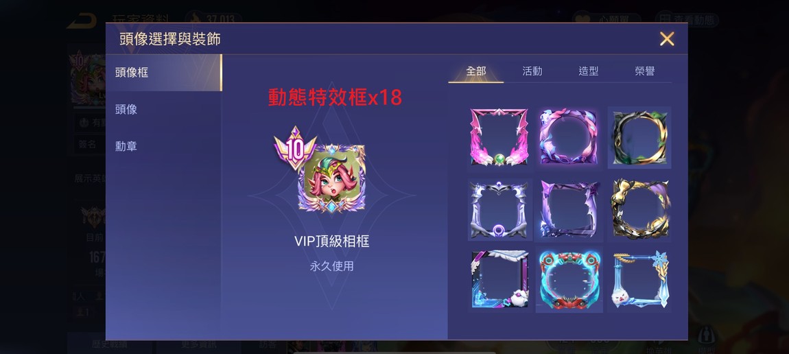 📌全奧義、金幣52萬、全服標、紫標、動態框x18