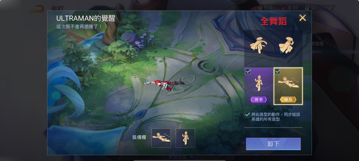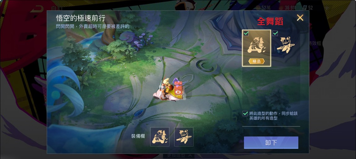 全奧義、金幣52萬、全服標、紫標、動態框x18