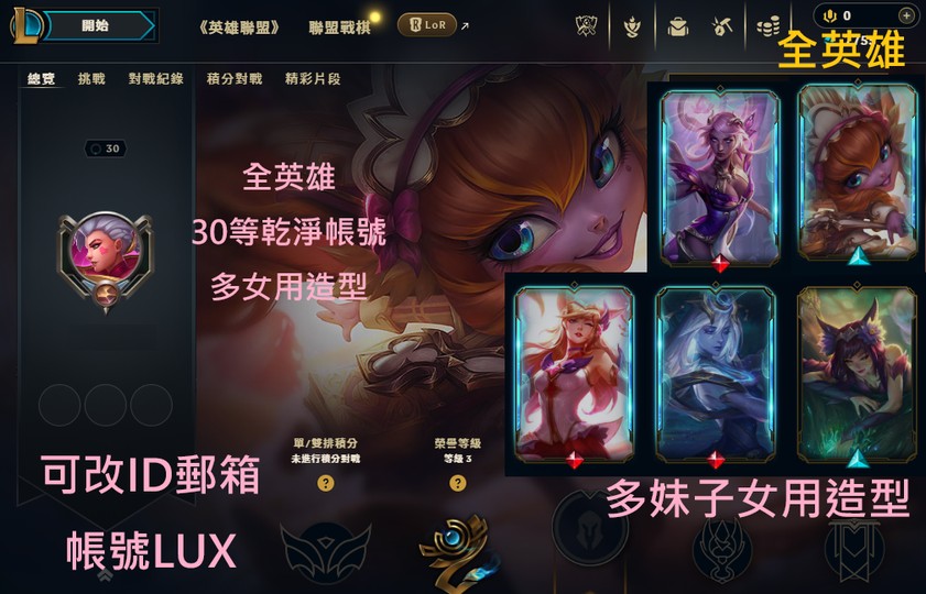 【全英雄】三十等乾淨帳號/靈花季阿璃索娜伊瑞莉雅賽特/西域牛仔犽凝/妹子女用
