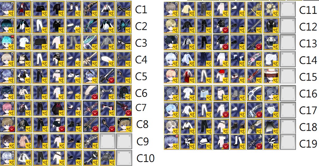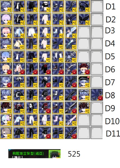 封印+30 衣櫥 手/鞋 50 上/下/髮100 武器/飾品150