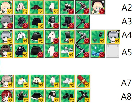 封印+30 衣櫥 手/鞋 50 上/下/髮100 武器/飾品150