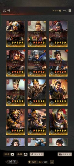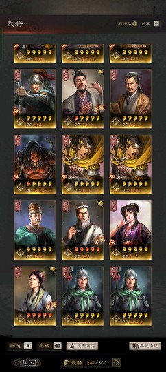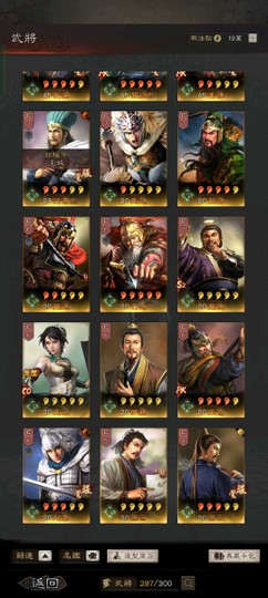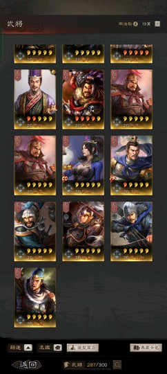 張飛,關妹,sp關羽,sp呂蒙,陸遜,sp周瑜,張角,sp袁紹,sp皇甫嵩,司馬懿以上都有開動態,工作原因無法像之前花太多時間,故便宜出售給有緣人,目前還是每天開上來抽卡養馬打材料存金銖