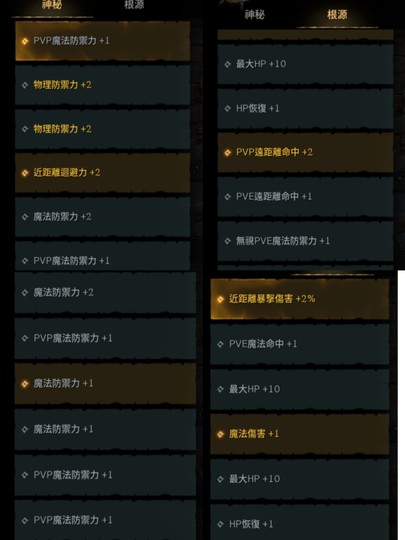 護身符:亞丁11、扭曲不幸14、恐懼死亡13、地獄不死15、殘酷黑暗13、不死傲慢8、死神1、象牙塔12、夢幻11