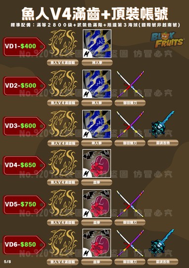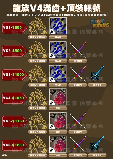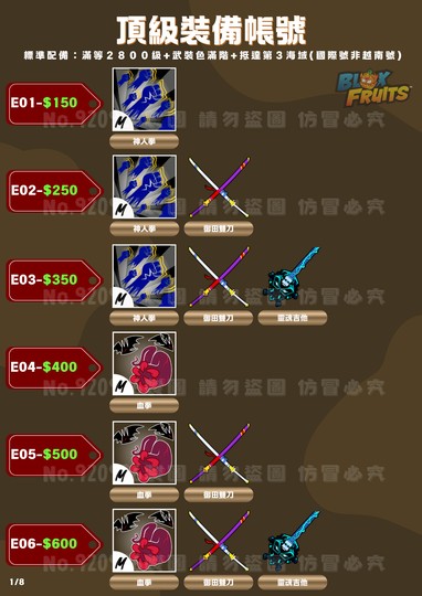BF滿級頂帳 血拳、神人拳、御田雙刀、靈魂吉他 便宜V4滿齒、抽果號、果實、代練