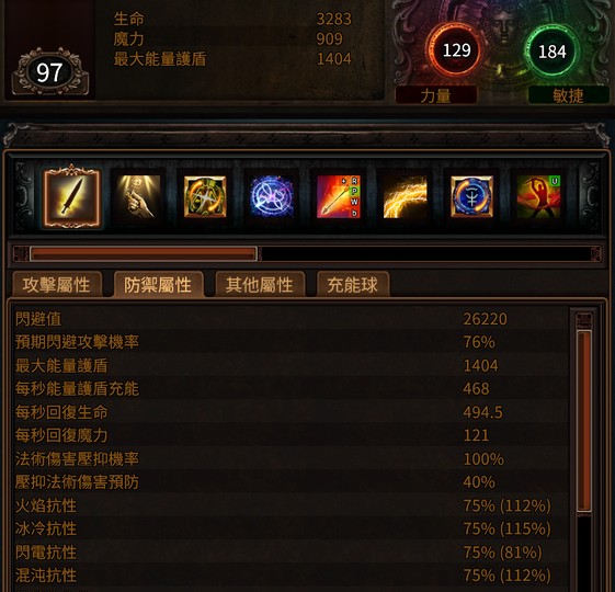 3.DPS爆炸,防禦一樣兼顧;3200+血量、1400+護盾、4抗滿、法壓滿,,閃避26000+ 免冰凍免冰緩