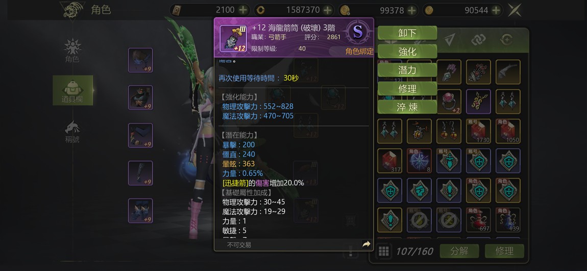 【50等】46天弓 物攻破萬 迅捷25%飛空20% 爆傷37%首增15%