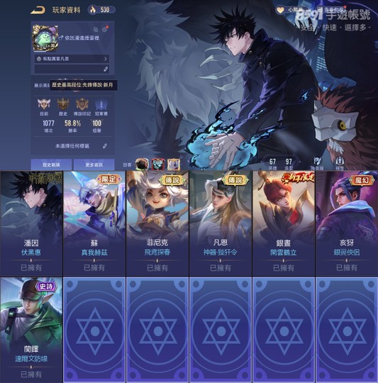 【G帳手機可改信箱未綁、星耀、無VIP、67英、97造】伏黑惠全套