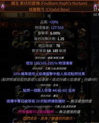 穢生 索伏的愛撫 城塞戰弓 頂傷195% 所有傷害可以造成點燃