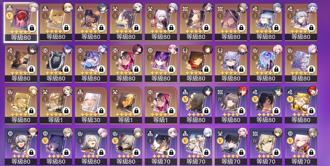 【女、70等、55金角、20金專】女、70等、55金角 遐蝶、風堇、長夜月、昔漣、大黑塔2+1 帳號無第三方綁定