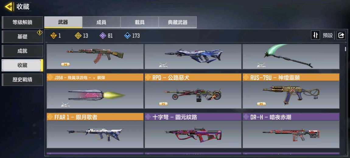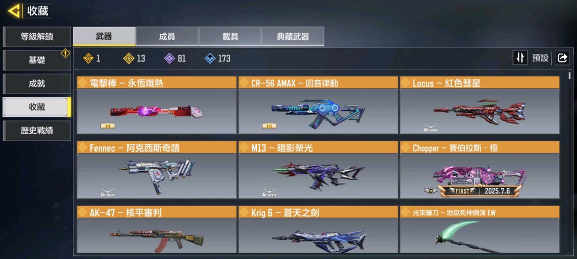 【241等】鋼彈槍全齊 13🟠 AK117碎片差25 升級材料300 M4碎片差9