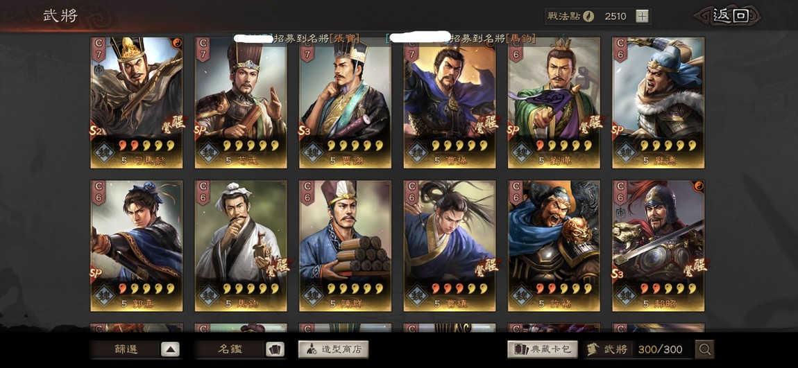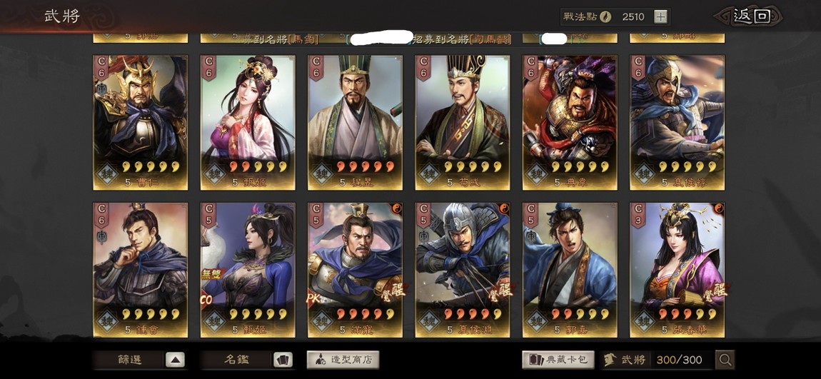 動態:司馬懿、郝昭、姜維、張飛、SP關羽、周瑜、陸遜、孫尚香、SP袁紹、SP朱儁、呂布、貂蟬、張角、左慈