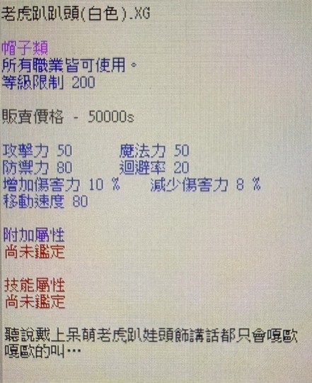 甩X0老虎趴趴頭(白色)/白虎頭(高增傷頭.小資必備)