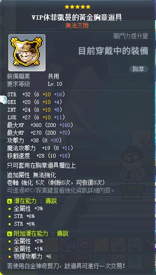 【VIP休菲凱曼的黃金胸章道具】漂流退谷 %力VIP休菲凱曼的黃金胸章道具均6攻