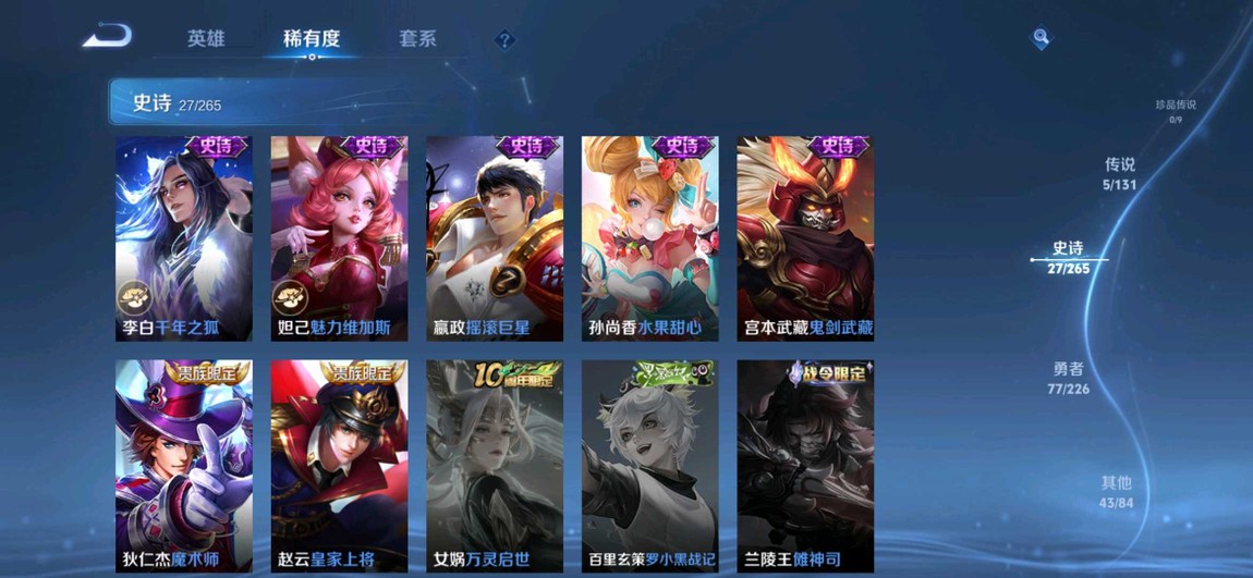 【30等】貴族7級 傳說5 史詩27 限定51 英雄124 皮膚152 王者