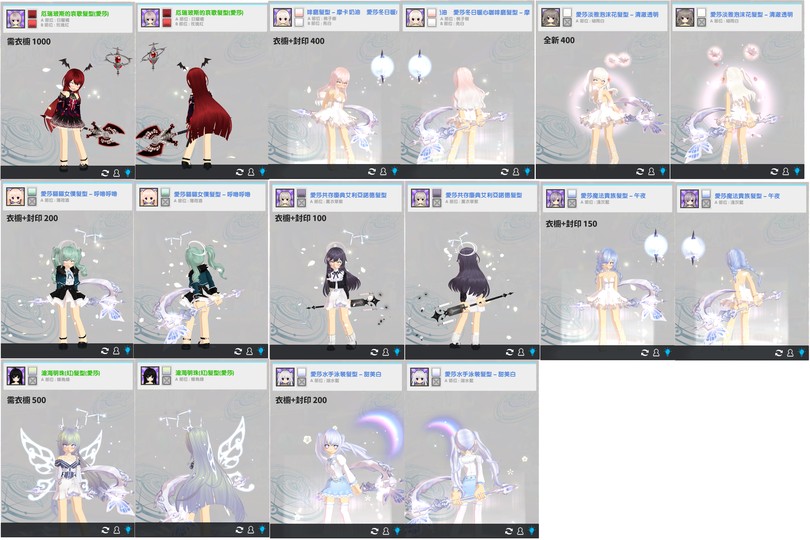 紅字=需衣櫥,◎=需封印