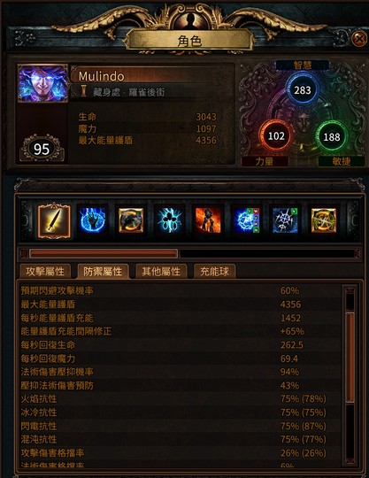 ✔ 血量 3043 + ES 4356 → 混合防禦更安全