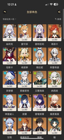 【男、70等、30金角、20金專】售退坑號 原神台服 崩鐵絕區零亞服 滿命號 雅滿命 遐蝶滿 水神滿 如圖