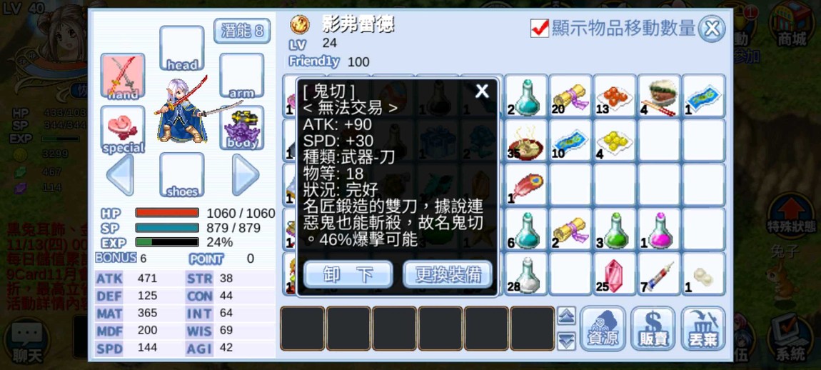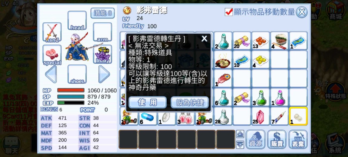 星河蒼穹/女闇屬(雨夜花)/影弗雷德+轉生丹+鬼切+巨劍爆武+愛心胸針/可下單