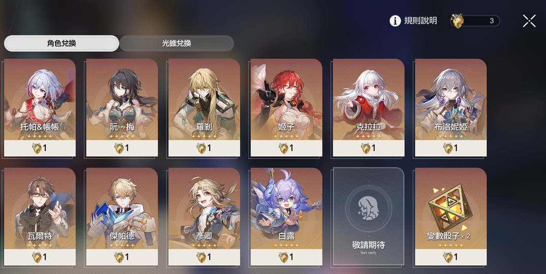 【女、70等、1金角、1金專】6+5白厄245抽+/三路輕鬆滿/將王棋0T.多6+5流螢景元花火知更週日昔璉