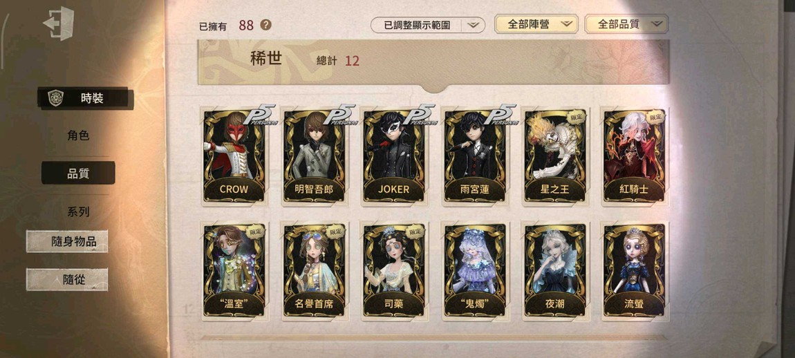 【120等】Joker Crow 紅騎士 星之王 溫室 名譽首席 司藥 鬼燭 夜潮 安卓有引