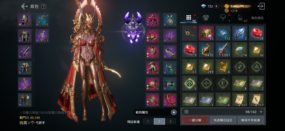 【84等、阿薩06、弓箭手】戰力45100 有圖看看喔