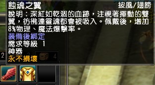蝕魂之翼(永久 +8%物理魔法爆擊率) - 2000元