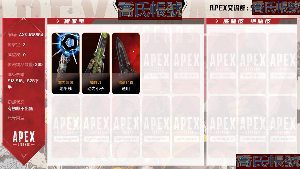 3傳家寶 265金, 1500金幣,賽季滿級:S13賽季,S15賽季,S25下