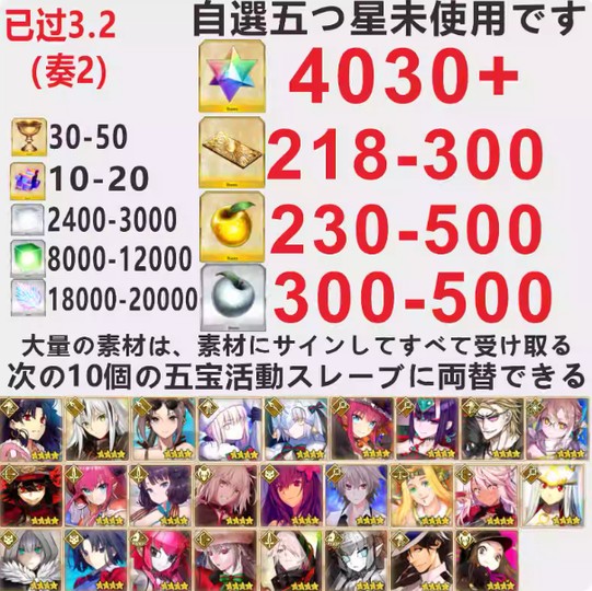 | 日服初始 | 【日服】1450 石頭 + 100 護符 + 90 個金蘋果 + 序章純初始 |