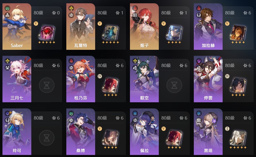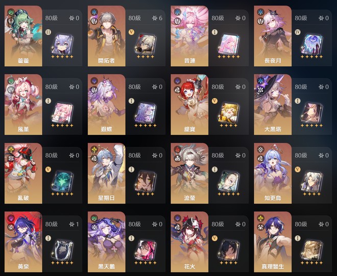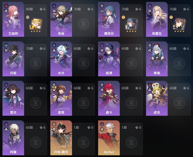 【男、70等、37金角、24金專】遐蝶昔漣長夜月風菫大黑塔流螢黃泉砂金都0+1 還有200抽up備戰4.0