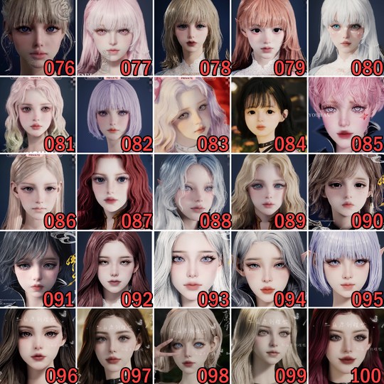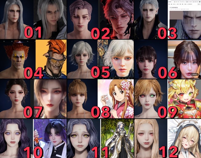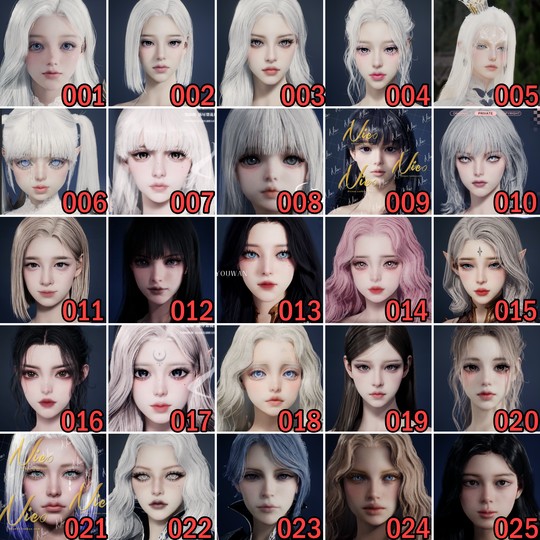 1️⃣ 臉型代號(例:女12、男6、男10、自製32)