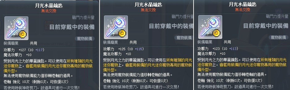 【P寵鑰匙(全服幫轉)】127攻 +125攻 + 123攻 3把物攻 月光水晶鑰匙