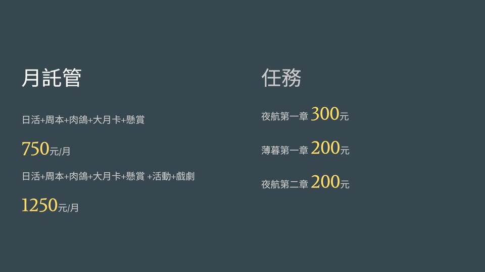 物品種類: 代練