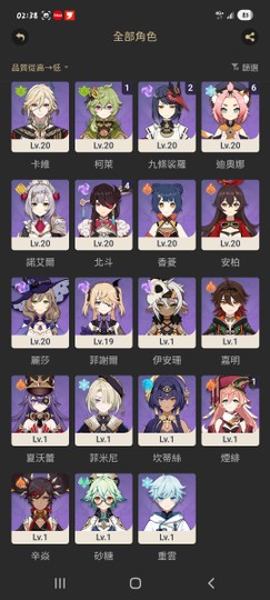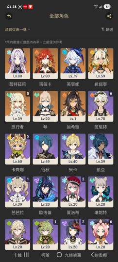【女、45等、5金角、2金武】火神瑪薇卡、奶奶茜特菈莉、芙寧娜、希諾寧、琴、迪希雅、六命班尼特