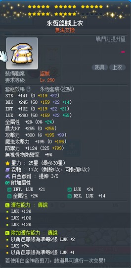 【永恆盜賊上衣】雙傳25星36%幸永恆盜賊上衣 附加2.5排 白3全b~