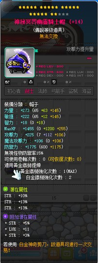 【神秘騎士帽】22星36%力神秘騎士帽 附加稀有 全v捲~