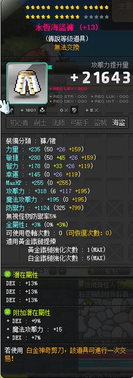 【永恆海盜褲】雙傳25星39%敏永恆海盜褲 附加97敏 白5全b~