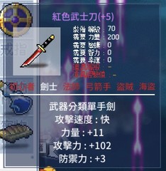 【102攻紅色武士刀+17力盾牌】(不拆售)