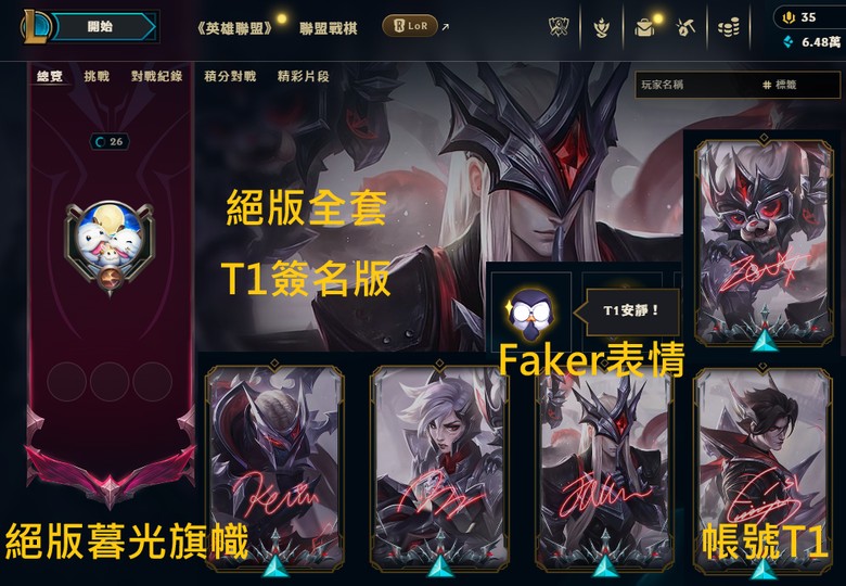 【T1簽名版】絕版T1全套簽名版造型(含特殊炫彩)/絕版暮光旗幟/滿月與普羅