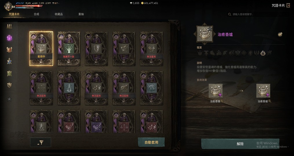 護身符:亞丁18 扭曲15 恐懼15 地獄12 殘酷15 不滅16 死神4 象塔19 夢幻13
