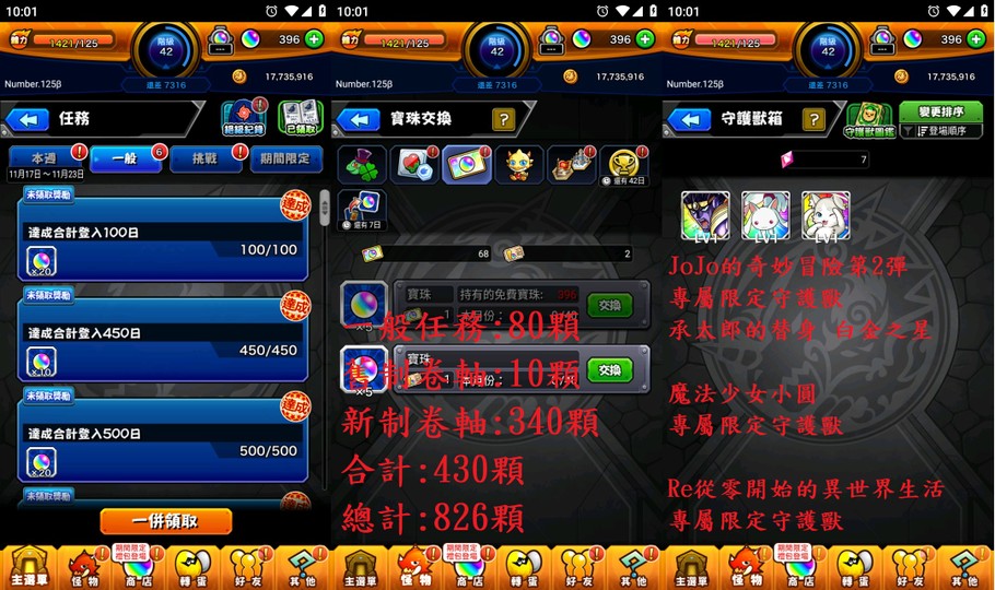 註:部分帳號已完成任務,領取轉蛋玉但尚未抽取。