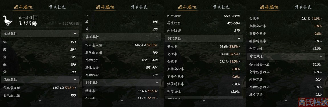 【11等】絕境,等級100,風華值2559,武林造詣3.128鵝,清河探索4級,套裝數量