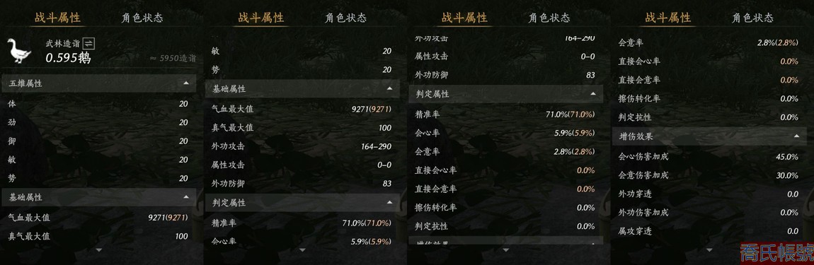 【11等】等級40,風華值1525,武林造詣0.595鵝,未用八音竅1,清河探索3級,河