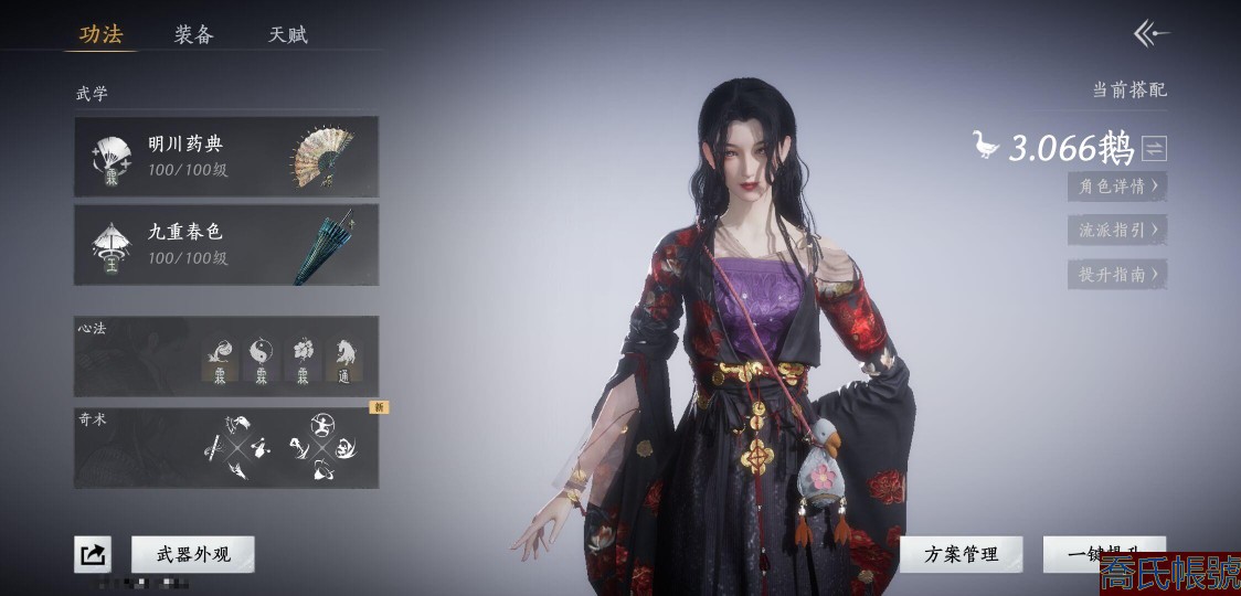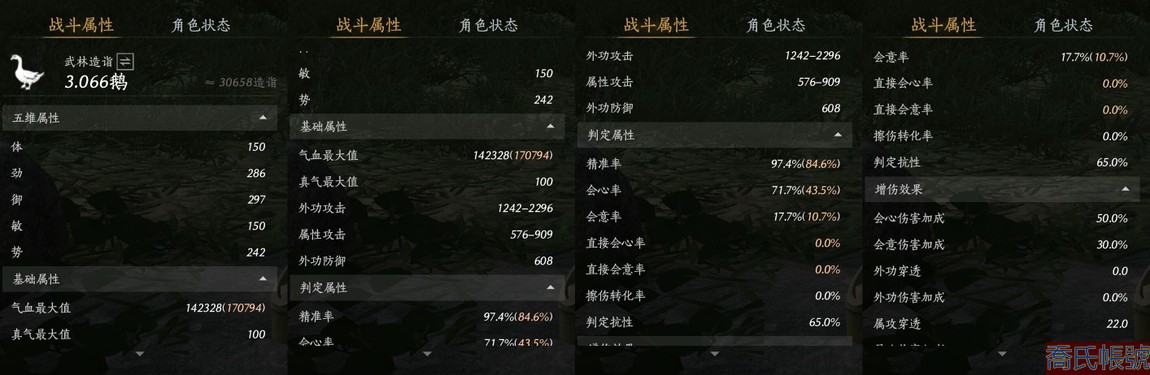 【11等】絕境,等級100,風華值2639,武林造詣3.066鵝,清河探索4級,套裝數量