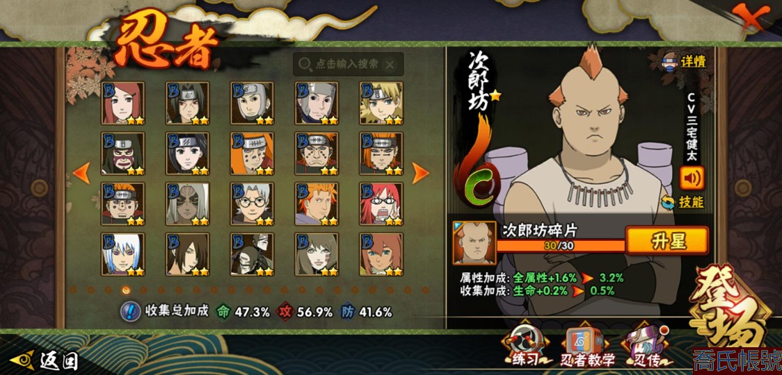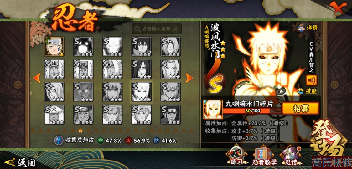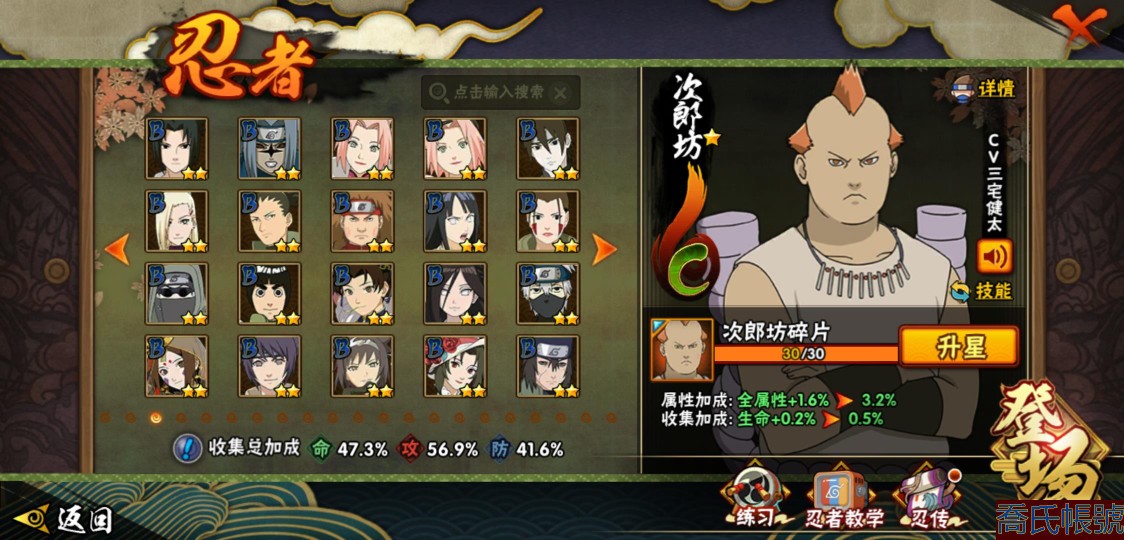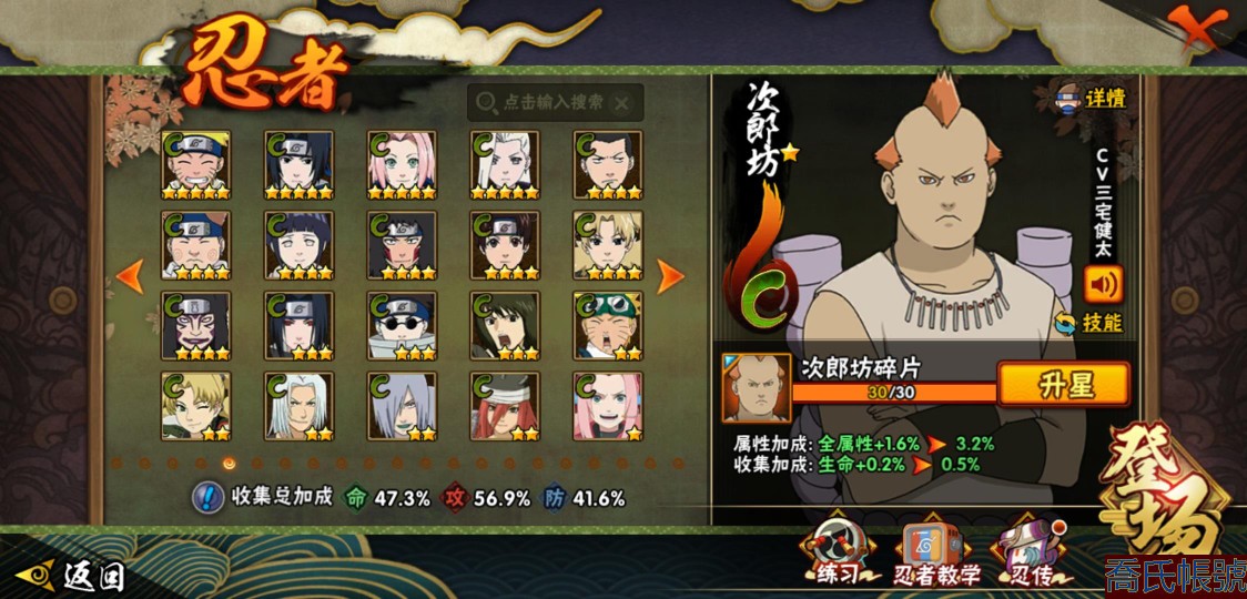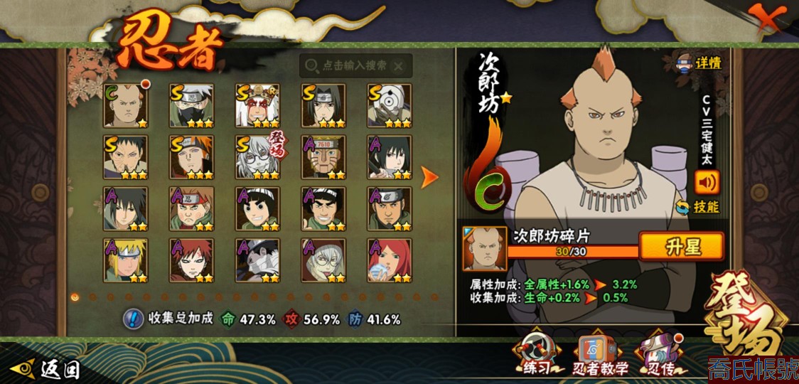 【OBHXDNK753642】戰鬥力:556W+;段位:暗部1階;本服排名:698;戰區排名:未上榜;VIP5級;S忍7個;A忍24個;通靈獸16個;S忍:須佐能乎旗木卡卡西,舞之豪傑自來也,須佐能乎宇智波鼬,白面具宇智波斑,忍界大戰宇智波帶土,天道佩恩,仙人模式藥師兜;A忍:初始形態機械鳴人,須佐能乎宇智波佐助,宇智波泉奈,忍界大戰秋道丁次,忍界大戰李洛克,邁特凱,猿飛阿斯瑪,青年波風水門,疾風傳我愛羅,穢土轉生桃地再不斬,半蛇斗篷藥師兜,不風,不緣,曉大蛇丸,緋流琥蠍,蠍,宇智波鼬,幹柿鬼鮫,迪達拉,飛段,死司憑血飛段,俠隱江湖大野木,羈絆神農,四代目土影黑土;通靈獸:忍犬,藍蛇,蛤蟆吉,砂之守鶴,忍龜,鐮鼬,猿魔,山椒魚,蜃,蛤蟆仙人,鮫鯊,蛤蟆健,烏鴉,蛤蟆龍,蛤蟆廣;時裝:百戰佩恩天道,百戰宇智波鼬須佐能乎,蜀面豪傑舞之豪傑自來也,太極靈韻日向花火武當宗師,熊貓少女天天峨眉宗師,飛瀑流泉長十郎六代目水影,烈土霓裳黑土四代目土影,緋櫻綻放春野櫻百豪;【3900】陰金水80片
