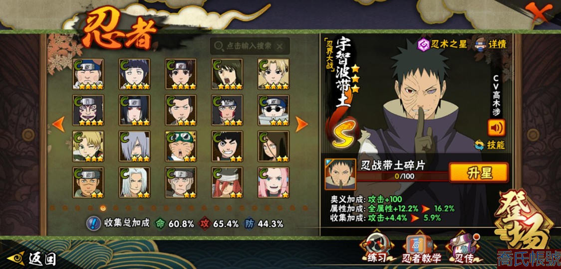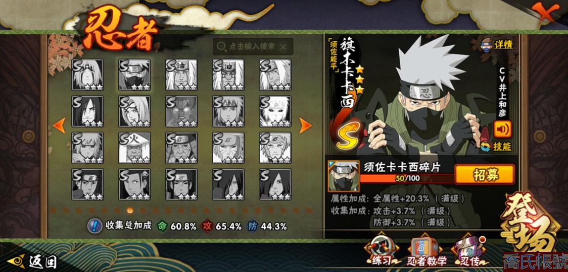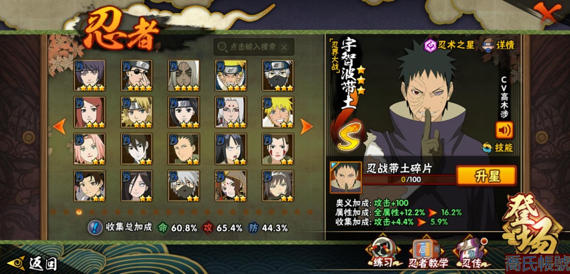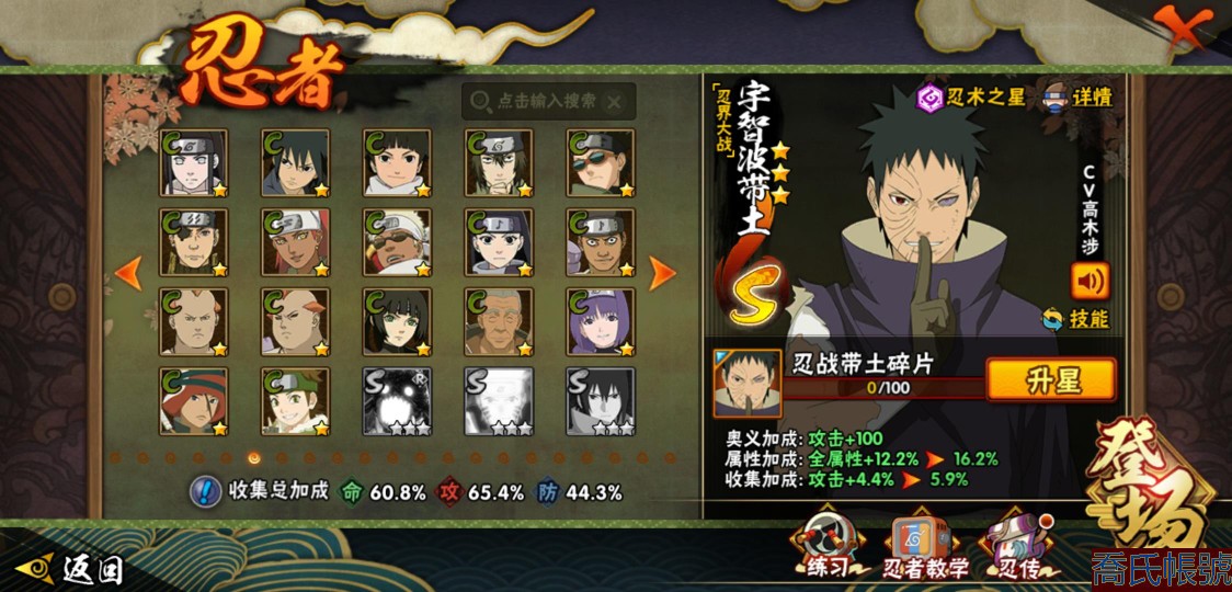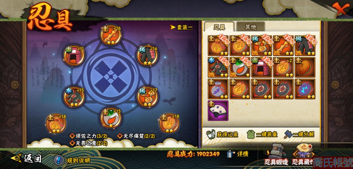 【OBHXDNK045342】戰鬥力:814W+;段位:中忍3階;本服排名:193;戰區排名:未上榜;VIP級;S忍7個;A忍23個;通靈獸15個;S忍:舞之豪傑自來也,綱手,穢土轉生解宇智波斑,須佐能乎宇智波鼬,忍界大戰宇智波帶土,天道佩恩,最終章大筒木舍人;A忍:邁特凱(5星),猿飛阿斯瑪(5星),幹柿鬼鮫(5星),須佐能乎宇智波佐助,宇智波泉奈,百豪春野櫻,忍界大戰秋道丁次,忍界大戰李洛克,幻之真容旗木卡卡西,青年波風水門,疾風傳我愛羅,忍界大戰奇拉比,半蛇斗篷藥師兜,穢土轉生角都,緋流琥蠍,蠍,宇智波鼬,迪達拉,飛段,死司憑血飛段,羈絆神農,桃式顯現漩渦博人,四代目土影黑土;通靈獸:忍犬,藍蛇,蛤蟆吉,忍龜,砂之守鶴,鐮鼬,猿魔,山椒魚,蜃,蛤蟆仙人,鮫鯊,蛤蟆健,烏鴉,蛤蟆龍;時裝:蜀面豪傑舞之豪傑自來也,百戰宇智波鼬須佐能乎,百戰佩恩天道,太極靈韻日向花火武當宗師,熊貓少女天天峨眉宗師,緋櫻綻放春野櫻百豪;【3854】