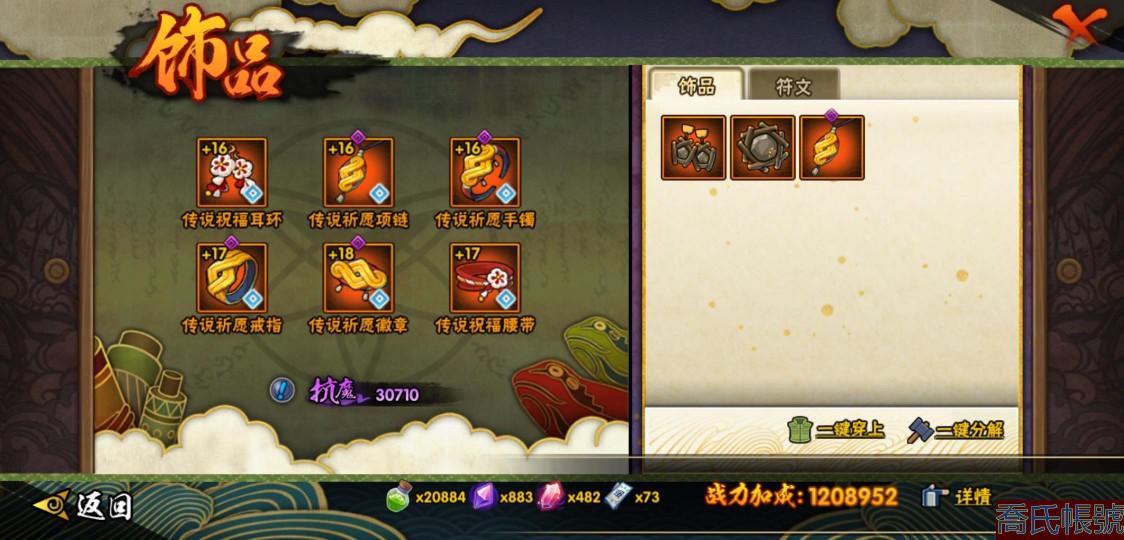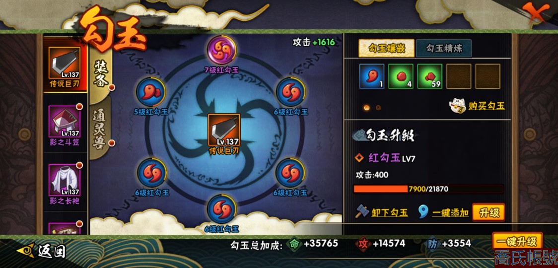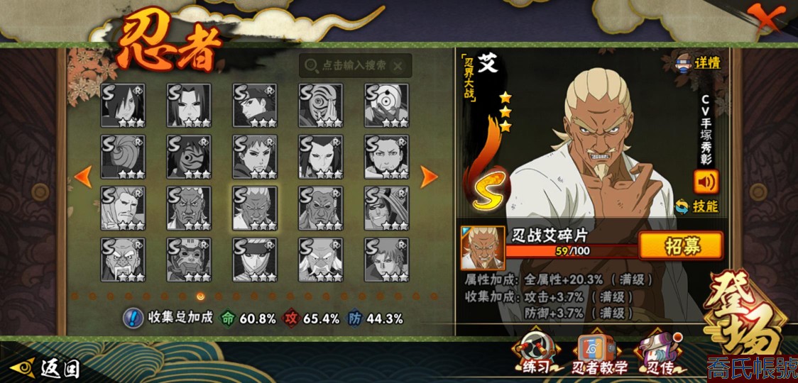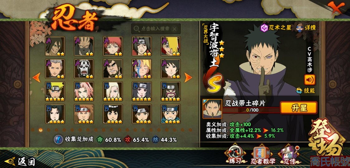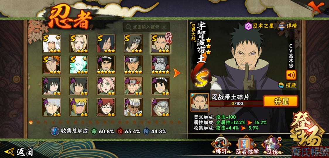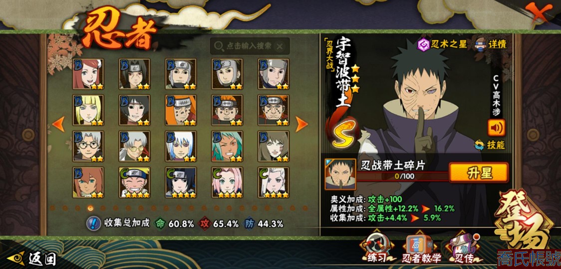 【OBHXDNK045342】戰鬥力:814W+;段位:中忍3階;本服排名:193;戰區排名:未上榜;VIP級;S忍7個;A忍23個;通靈獸15個;S忍:舞之豪傑自來也,綱手,穢土轉生解宇智波斑,須佐能乎宇智波鼬,忍界大戰宇智波帶土,天道佩恩,最終章大筒木舍人;A忍:邁特凱(5星),猿飛阿斯瑪(5星),幹柿鬼鮫(5星),須佐能乎宇智波佐助,宇智波泉奈,百豪春野櫻,忍界大戰秋道丁次,忍界大戰李洛克,幻之真容旗木卡卡西,青年波風水門,疾風傳我愛羅,忍界大戰奇拉比,半蛇斗篷藥師兜,穢土轉生角都,緋流琥蠍,蠍,宇智波鼬,迪達拉,飛段,死司憑血飛段,羈絆神農,桃式顯現漩渦博人,四代目土影黑土;通靈獸:忍犬,藍蛇,蛤蟆吉,忍龜,砂之守鶴,鐮鼬,猿魔,山椒魚,蜃,蛤蟆仙人,鮫鯊,蛤蟆健,烏鴉,蛤蟆龍;時裝:蜀面豪傑舞之豪傑自來也,百戰宇智波鼬須佐能乎,百戰佩恩天道,太極靈韻日向花火武當宗師,熊貓少女天天峨眉宗師,緋櫻綻放春野櫻百豪;【3854】