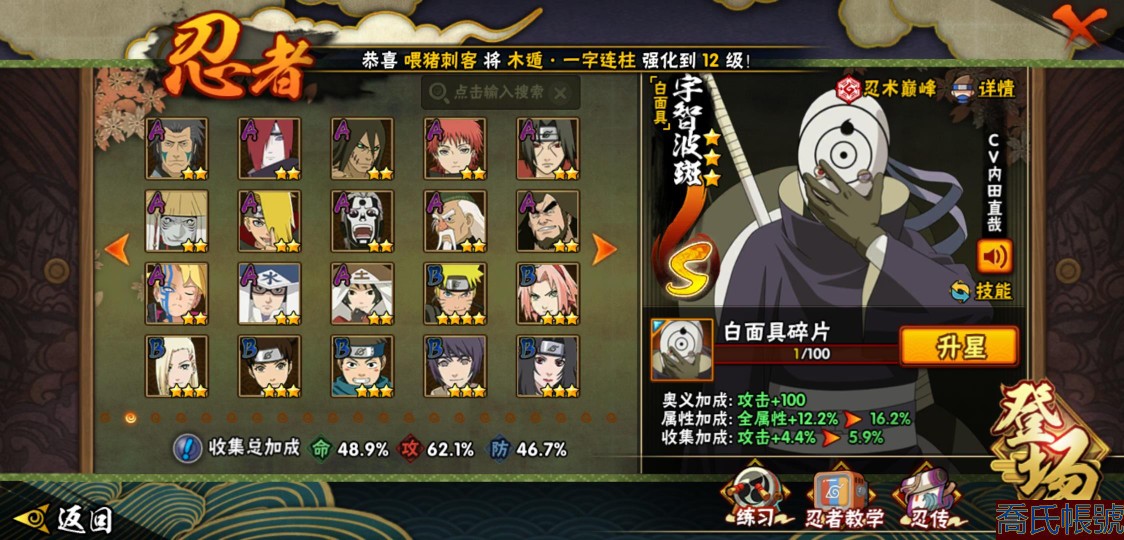 【11等】戰鬥力:611W+;段位:暗部1階;本服排名:;戰區排名:;VIP級;S忍9
