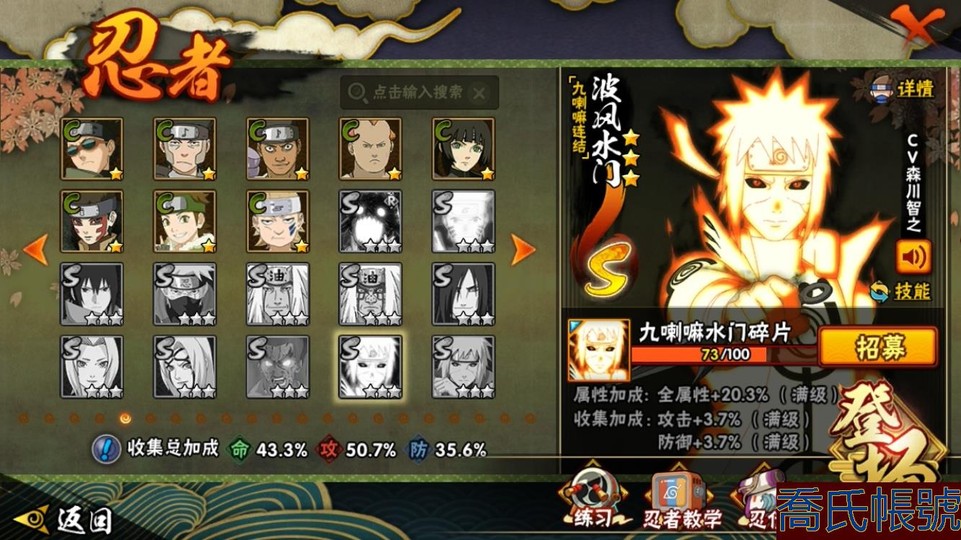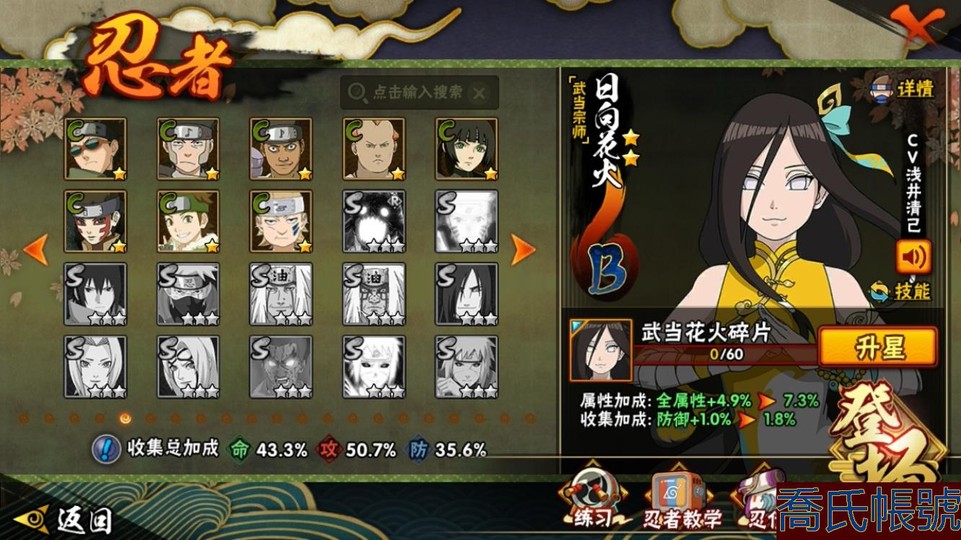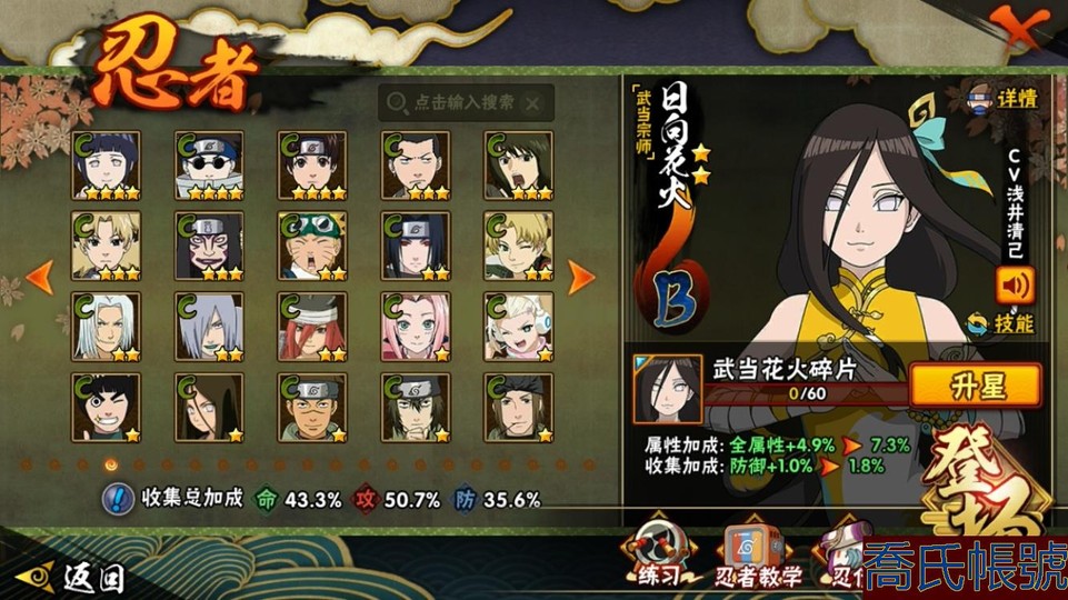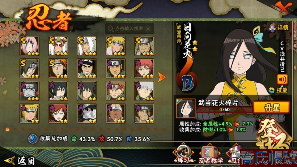 【OBHXDNK600442】戰鬥力:499W+;段位:下忍3階;本服排名:1418;戰區排名:未上榜;VIP級;S忍7個;A忍17個;通靈獸14個;S忍:穢土轉生猿飛日斬,波風水門,舞之豪傑自來也,忍界大戰春野櫻,天道佩恩,須佐能乎宇智波鼬,傳說中的三忍自來也;A忍:邁特凱,猿飛阿斯瑪,蠍,幹柿鬼鮫,須佐能乎宇智波佐助,宇智波泉奈,忍界大戰秋道丁次,幻之真容旗木卡卡西,青年波風水門,疾風傳我愛羅,穢土轉生桃地再不斬,青年艾,忍界大戰土臺,緋流琥蠍,迪達拉,飛段,死司憑血飛段;通靈獸:忍犬,藍蛇,蛤蟆吉,忍龜,鐮鼬,猿魔,山椒魚,蜃,蛤蟆仙人,鮫鯊,蛤蟆健,砂之守鶴,怒鬼爪,烏鴉;時裝:蜀面豪傑舞之豪傑自來也,百戰波風水門,百戰佩恩天道,百戰宇智波鼬須佐能乎,太極靈韻日向花火武當宗師,熊貓少女天天峨眉宗師;【695】【蘋果QQ】金身水門73片,解斑59,巳月首付已付
